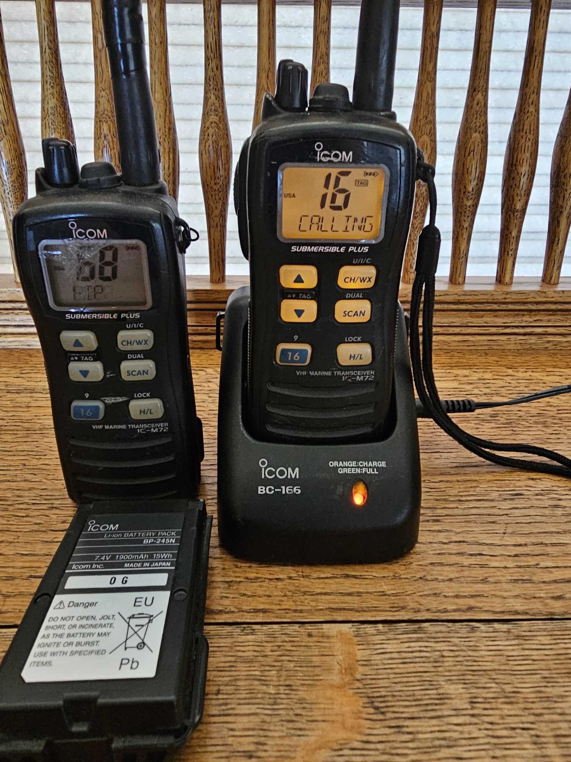 2 icom ic-m72 vhf marine radio transcievers with charger and spare battery they work perfect full scanning $65
